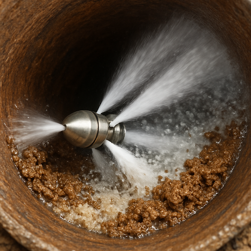 - The Tool: A hydro-jetting machine uses a specialized nozzle to shoot highly pressurized water—up to 4,000 PSI—through the pipe.